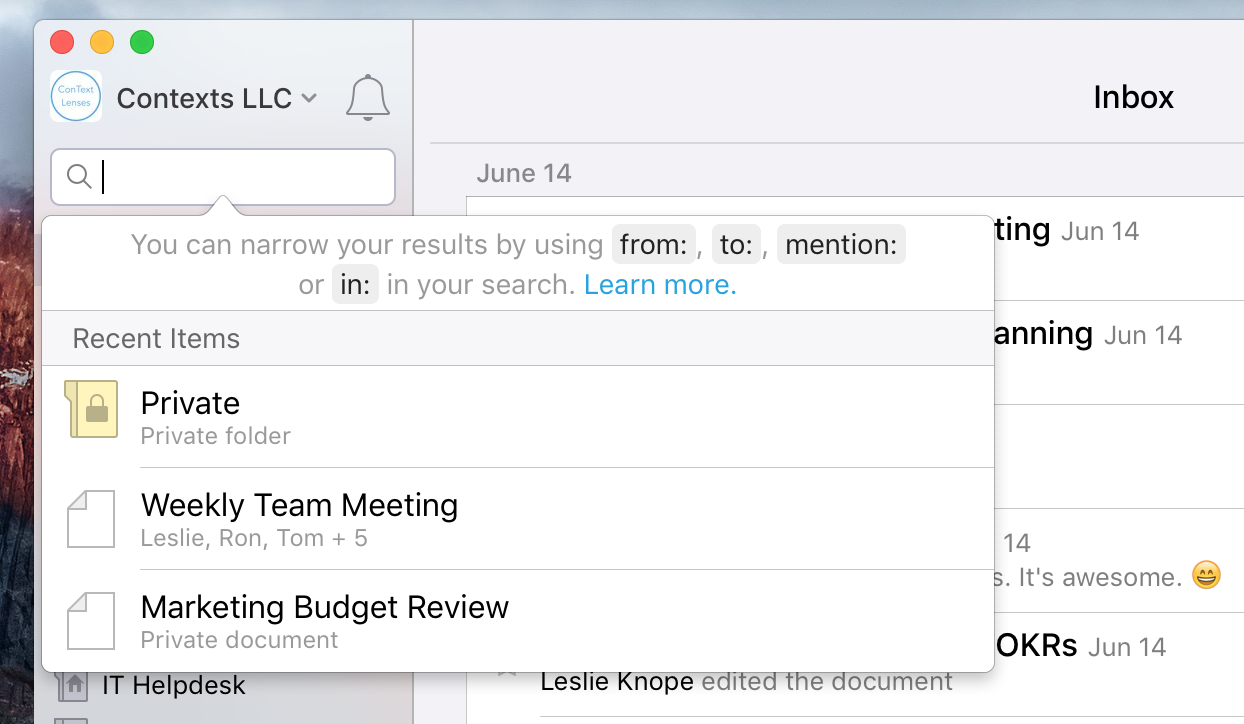 One of the coolest parts of Quip's search engine are the search operators. Operators let you narrow results if you remember certain details about the content you're looking for.