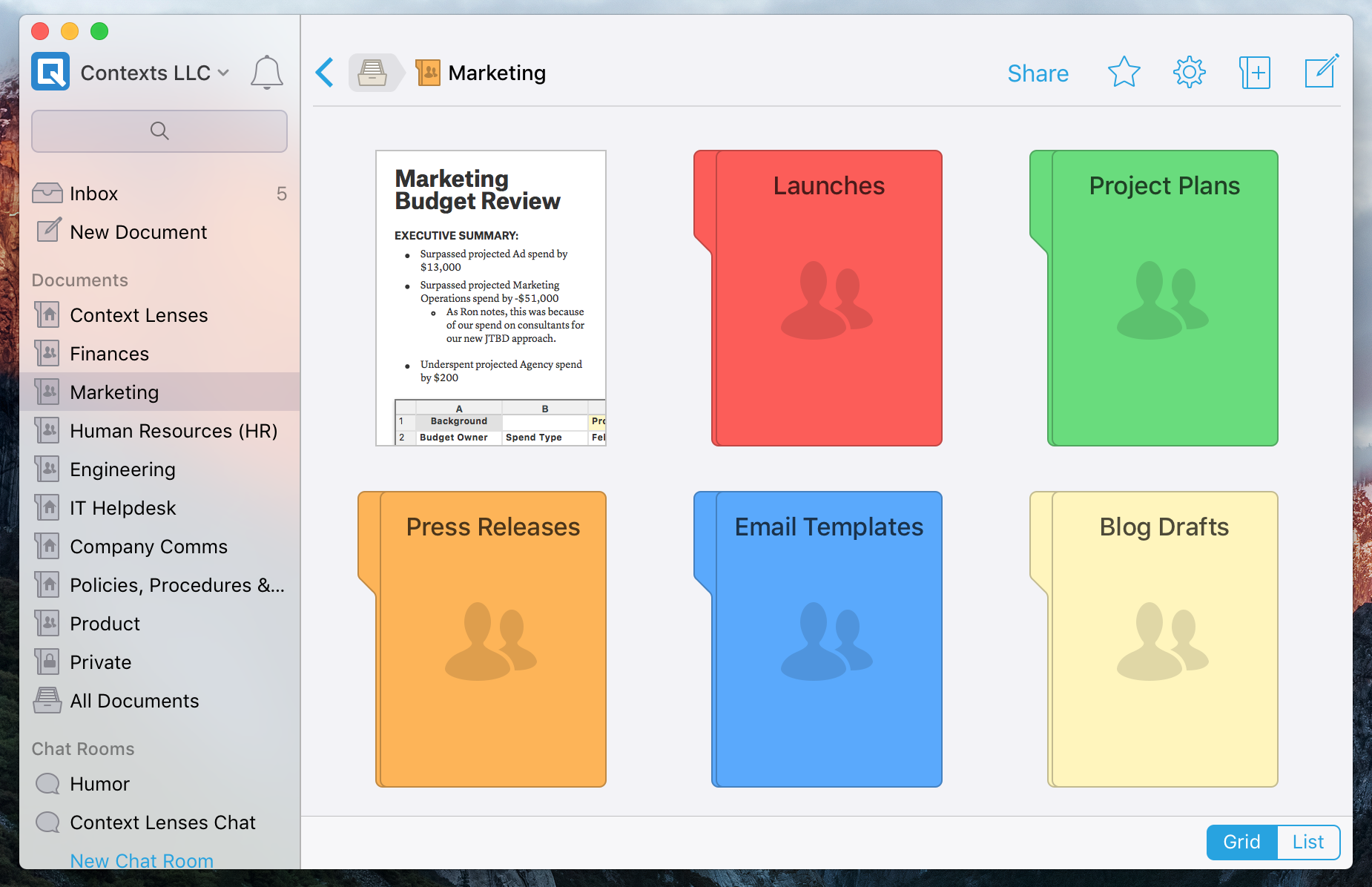 • Shared folders to break down information silos