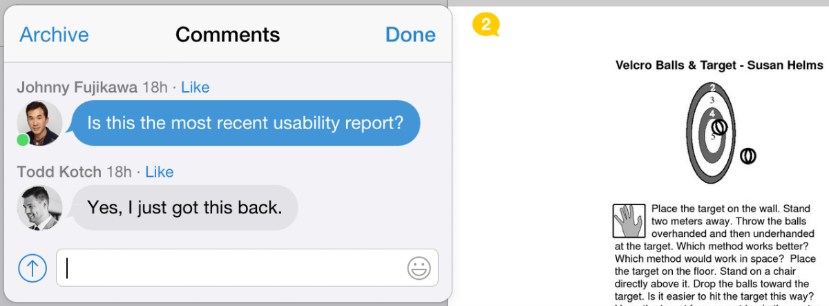 Once you import a PDF, you can utilize all of Quip's great collaboration features on any device — share the document with colleagues, send messages on the chat thread, and comment on specific pages.