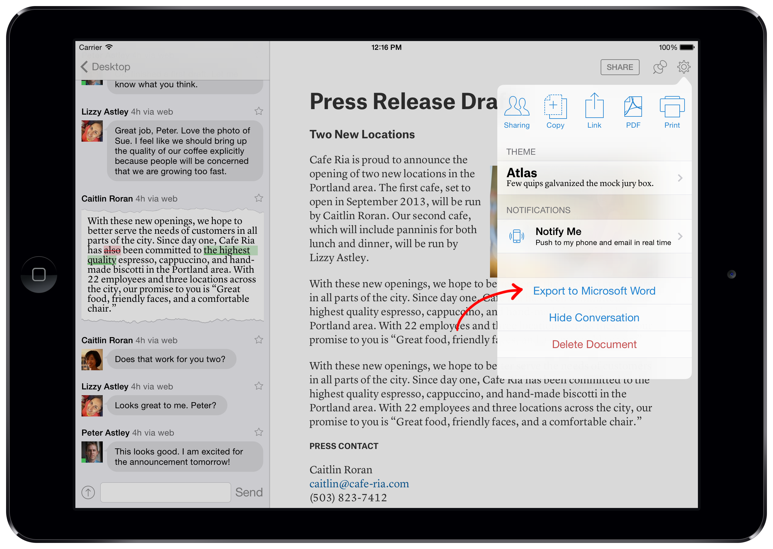 - Export— You can now export any Quip document to Microsoft Word so you can easily work with people who don't use the product (yet).