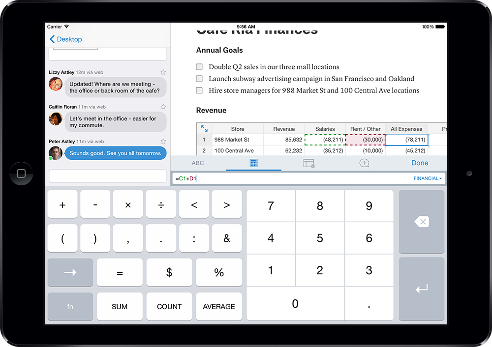 You can start using Quip Spreadsheets today on iPhone, iPad, Android phones and tablets, and your desktop.
