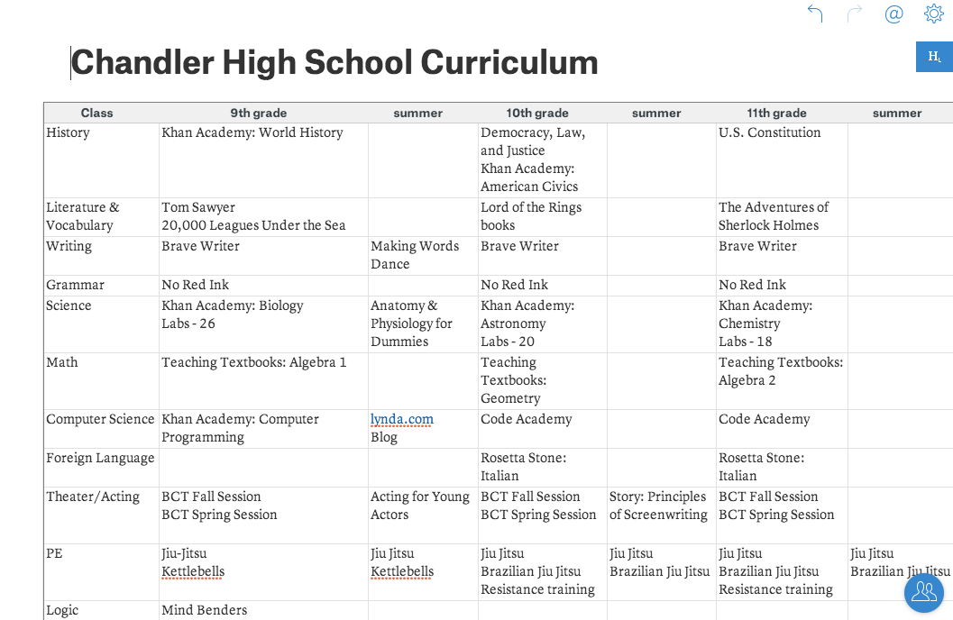 After using Quip in a team, I naturally started using it for personal stuff, too. We recently starting homeschooling our son, and I'm using Quip to organize his curriculum. I started a homeschool folder and shared it with my husband so we can collaborate and agree on what we think is important for our son to learn. It feels so good to have a roadmap in place for this. Sidenote: Lord of the Rings totally qualifies as Literature, right?